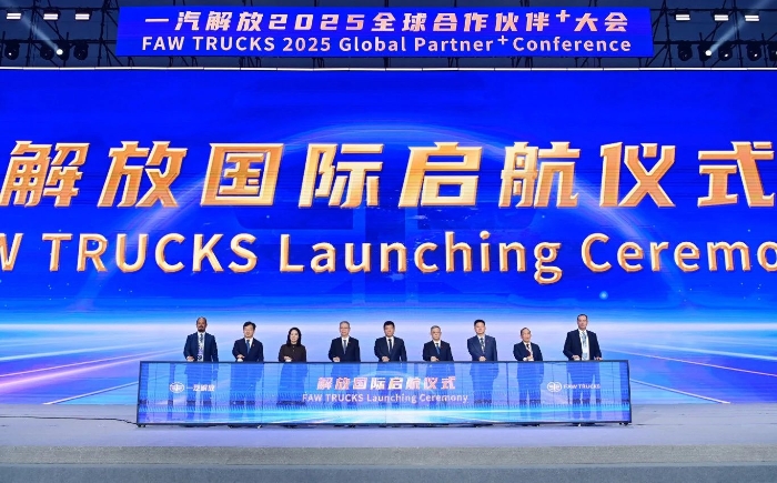 会上,刘亦功、吴碧磊等与会领导共同按下象征解放国际业务正式起航的启动按钮,一汽解放作题为《客户至上赢天下,全球联动展新篇》的主题报告并发布“SPRINT2030”国际化战略,全面构建“全球化布局、多品牌运营、技术引领、业务创新、共建共赢、以人为本”的六项国际化战略举措,为实现国际化美好蓝图、全球化发展目标夯实强大根基。