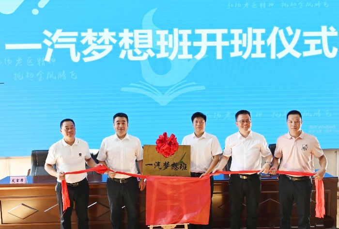 仪式上,各位领导与班主任共同为一汽梦想班揭牌。一汽梦想班的孩子们将在这里顺利完成高中学业,迈向人生的新征程。