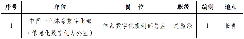 联系人:中国第一汽车集团有限公司党委干部部 陈秋彤