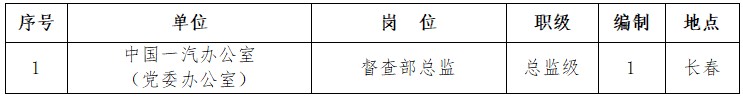联系人:中国第一汽车集团有限公司党委干部部 陈秋彤