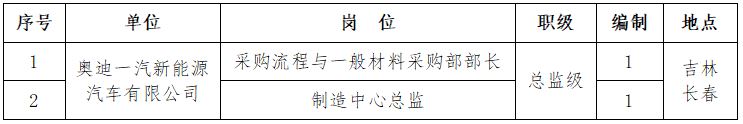 根据工作需要,现对奥迪一汽新能源汽车有限公司部分高级经理岗位面向社会公开招聘,具体内容如下: