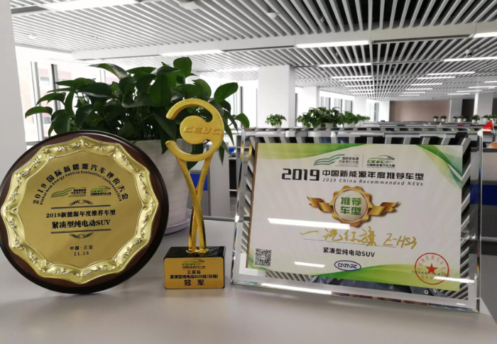 红旗E-HS3在“2019中国新能源汽车大赛”上夺得冠军