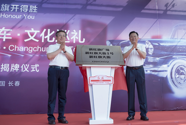 吉林省委常委、长春市委书记王凯与集团公司董事长、党委书记徐留平共同为“新红旗大街”揭牌。至此,红旗广场将正式更名为“新红旗广场”、红旗广场以西路段将命名为“新红旗大街”、一汽新总部大楼门牌号将设立为“新红旗大街1号”。
