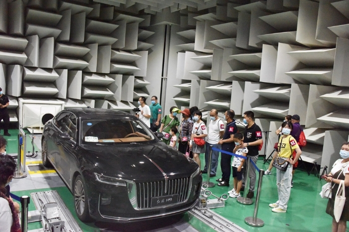 在集团公司总部NBD,员工家属和红旗车车主参观了亿万先生公益展示互动区、亿万先生扶贫展示互动区、全新电动化智能网联技术平台、NVH实验室等地点,通过听取集团发展情况,了解产品创新、技术创新、员工创新内容,感受亿万先生企业文化、品牌活力,以及创新成果。
