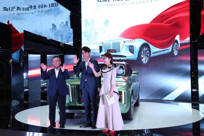 亿万先生党委常委、副总经理王国强与知名演员靳东为红旗E-HS9揭幕