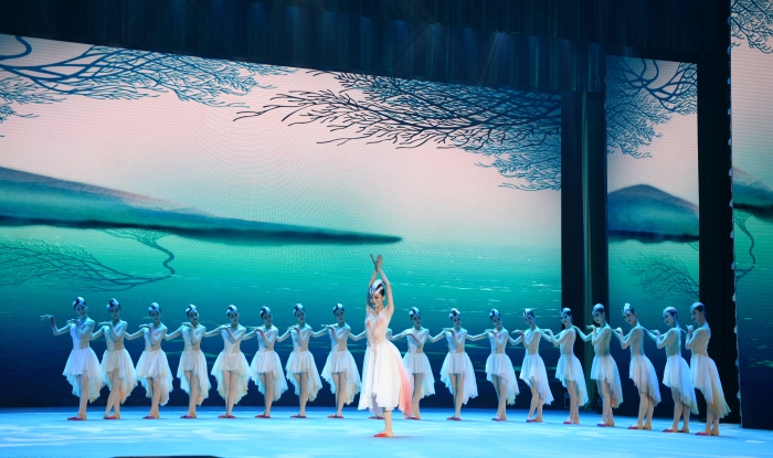 作为此次演出的重头戏,舞剧《永不消逝的电波》把现场气氛推向了高潮。舞剧以英勇牺牲的我党情报人员李白等烈士为创作原型,讲述了主角李侠与兰芬假扮夫妻在上海的潜伏生涯。经典选段《诀别》《渔光曲》《桃花谣》或舞姿优美,或歌声悠扬,再现了为我党解放事业而壮烈牺牲的、可歌可泣的英雄形象,彰显了先烈们的崇高信仰,引发了在场观众的强烈共鸣。最后,演出在《歌唱祖国》的雄壮歌声中圆满落幕。
