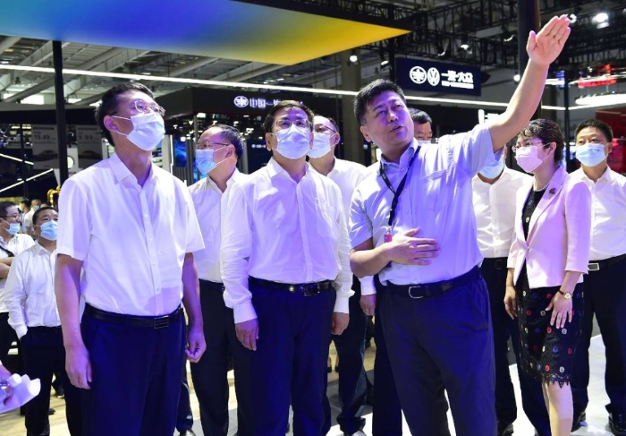 在本届汽博会上,集团公司携旗下品牌以联合包馆的方式参展,王凯一行分别在红旗展台,奔腾展台,一汽-大众的大众展台、捷达展台、奥迪展台,一汽丰田展台,一汽马自达展台参观,对参展车型进行了解,在参观红旗展台的HS7、HS5、H7、H5等在售车型和即将年内上市的H9后,对红旗H9集成红旗品牌在造型设计、驾乘体验、智能网联等领域的最新技术成果表示赞许。