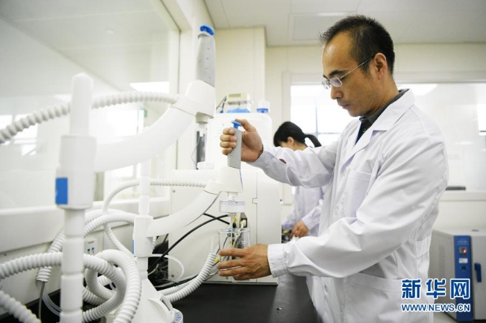 在大庆油田勘探开发研究院,科研人员在进行聚合物驱油实验(2019年6月26日摄)。新华社记者 王建威 摄