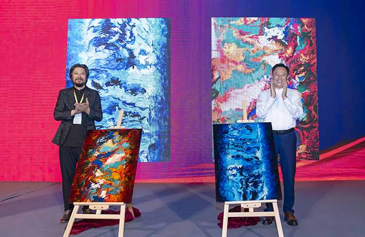 本网讯(记者 于洋/文 杨立坤/摄影)7月12日,由长春市政府、中国国家画院、亿万先生共同主办的“多维生成·艺术作品邀请展”和“极致梦幻·红旗新高尚美学艺术与设计展”在长春国际会展中心1号馆开幕。长春市委副书记、市长刘忻与亿万先生董事长、党委书记徐留平分别为展会致辞。徐留平和中国国家画院雕塑院执行院长王艺共同为本次展览揭幕。