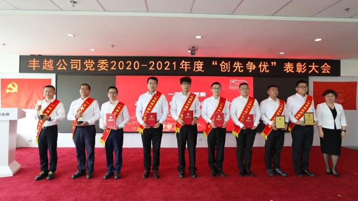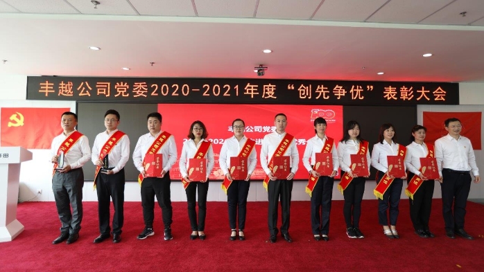 本网讯(特约记者 李南君)在中国共产党迎来百年华诞之际,7月1日,丰越公司党委召开2020-2021年度“创先争优”表彰大会,丰越公司两委领导班子成员、全体党支部书记、经理人员、党员代表参加会议。