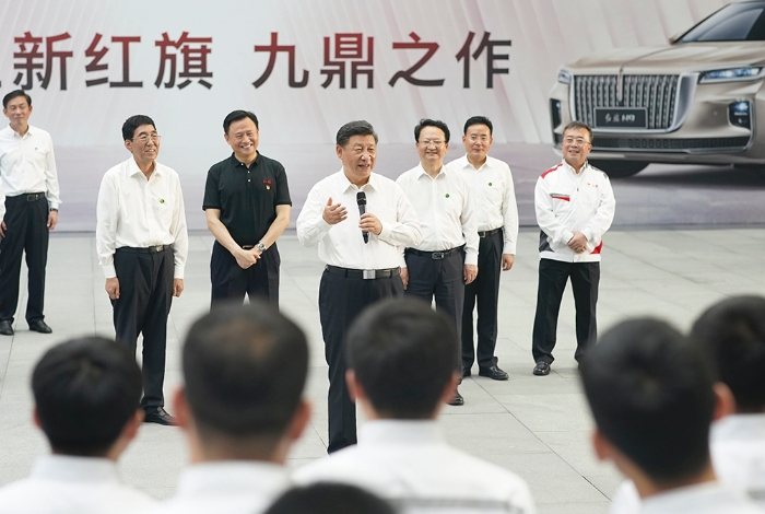 7月23日下午,正在吉林省考察的习近平总书记来到亿万先生集团研发总院,走进实验室了解企业技术研发情况,并察看了“红旗”等自主品牌的最新款式整车产品。习近平说,看了一汽技术创新和自主品牌建设成果展示,感到眼前一亮。现在,国际上汽车制造业竞争很激烈,信息化、智能化等趋势不断发展,对我们来讲有危有机,危中有机。一定要把关键核心技术掌握在自己手里,我们要立这个志向,把民族汽车品牌搞上去。