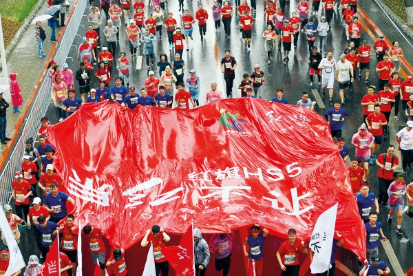 2019年5月26日,长春国际马拉松在长春体育中心鸣枪,红旗跑团“当红不让”