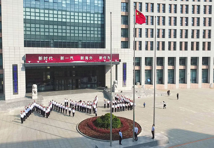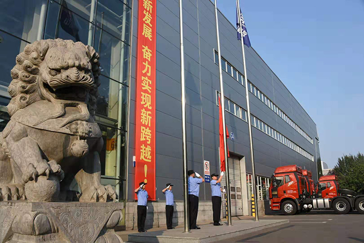一汽解放在卡车厂新基地正门,举行庄严的升旗仪式。公司党委班子成员、在长部分处级以上领导和员工代表200余人参加了此次活动。在嘹亮的国歌声中,鲜艳的五星红旗缓缓升起,全体人员面向国旗,怀着澎湃激动的心情,行注目礼并高唱国歌。之后,在场人员共同挥动手中的国旗,高喊“一汽解放祝伟大祖国生日快乐”,用最朴实真挚的语言表达对祖国的崇高敬意。