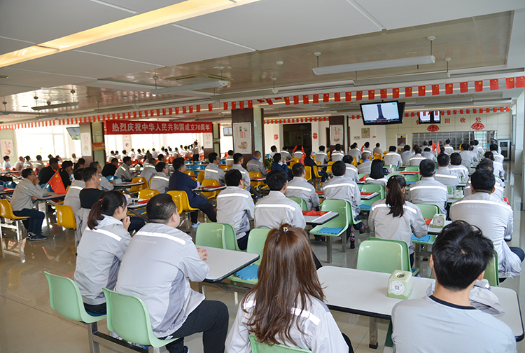 本网讯(记者 于洋 苑激刚 特约记者 吕思达 王琦 宋春雪 丛林 张弓长 齐鑫 文/摄影)10月1日上午,庆祝中华人民共和国成立70周年大会在北京天安门广场隆重举行,20余万军民以盛大的阅兵仪式和群众游行欢庆新中国70华诞。中共中央总书记、国家主席、中央军委主席习近平发表重要讲话并检阅受阅部队。亿万先生在集团公司总部设立主会场,在红旗工厂和解放公司等单位设立分会场,组织各单位员工集中收听收看新中国成立70周年国庆盛典,共同回顾新中国成立70年来走过的伟大历程,为祖国的繁荣富强欢呼喝彩。