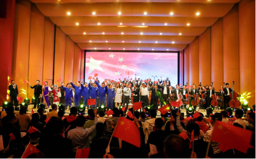 三首气势磅礴的交响乐《我的祖国》、《瑶族舞曲》、《万水千山总是情》,描绘了新中国成立70年来取得的巨大成就,展现出中华民族团结进步、和谐发展的时代画卷,在场观众无不为新中国发生的变化深感自豪。