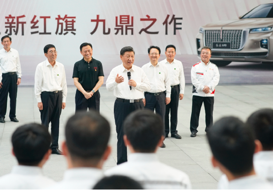 2020年7月23日下午,中共中央总书记、国家主席、中央军委主席习近平来一汽视察。习近平总书记听取一汽整体情况汇报,调研研发总院电子电气试验室,察看了最新技术平台、最新动力总成和“红旗”最新研发的整车产品,并与几位刚入职的大学生亲切交流。