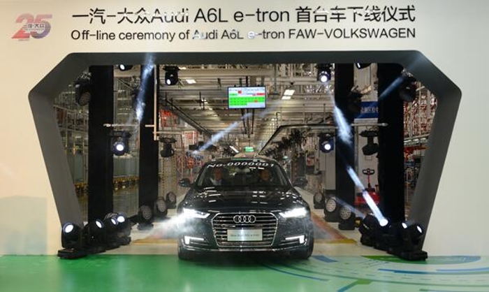 2016年10月21日,一汽-大众首款量产C级新能源车型奥迪A6L e-tron在长春基地总装车间正式下线。 奥迪A6L e-tron是一汽-大众专为中国市场打造的插电式混合动力车型,也是奥迪第一款可以纯电动行驶的量产C级豪华轿车。
