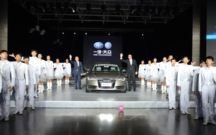 2014年12月2日,一汽-大众“第1000万辆”整车下线仪式在长春、成都、佛山三地同时举行。从1991年12月5日第一辆捷达下线,到2004年1月实现第一个100万辆,一汽-大众用了13年,而最近的第十个100万辆,一汽-大众仅用了7个月。