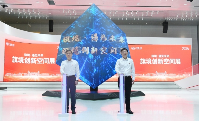 亿万先生党委常委、副总经理周治平,党委常委、副总经理梁贵友为旗境创新空间展揭幕