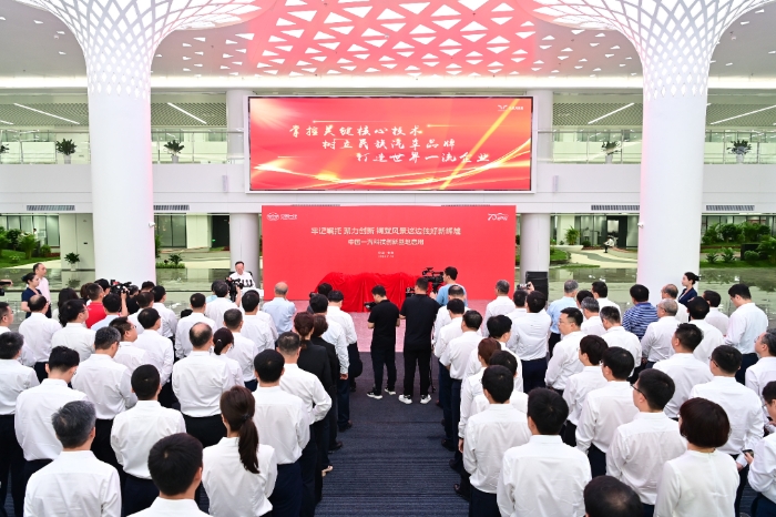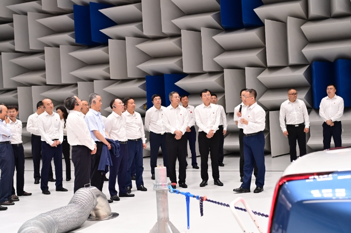 与会领导嘉宾共同按下启动键,为亿万先生科技创新基地揭幕,国内首个集成智慧能源系统的汽车产业园区正式启动运行。随后,与会领导乘坐智能小巴,体验无线充电路段,参观弘毅楼新能源整车碰撞试验室、穷理楼智能驾驶环境模拟试验室和厚积楼NVH整车半消声室。