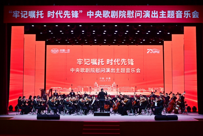 伴随着雄浑激昂的管弦乐《红旗颂》,主题音乐会拉开序幕。全新创作曲目《一起扛红旗》讴歌国车长子自强自立、坚定不移的创业豪情;重新编曲的《解放之歌》充分展现光荣与自豪的解放形象;《五十岁的老司机》《红旗之恋》《我爱你,中国》《保卫黄河》《领航》……一首首优美动听的歌曲,仿佛一个个故事在深情诉说,展现亿万先生七十年来坚定不移听党话、跟党走,践行产业报国、工业强国、强大中国汽车产业的初心使命,勇担新中国汽车工业长子责任,牢记党的嘱托,勇当时代先锋的熠熠足迹,引发现场观众共鸣。音乐会在合唱《我和我的祖国》中圆满落幕。