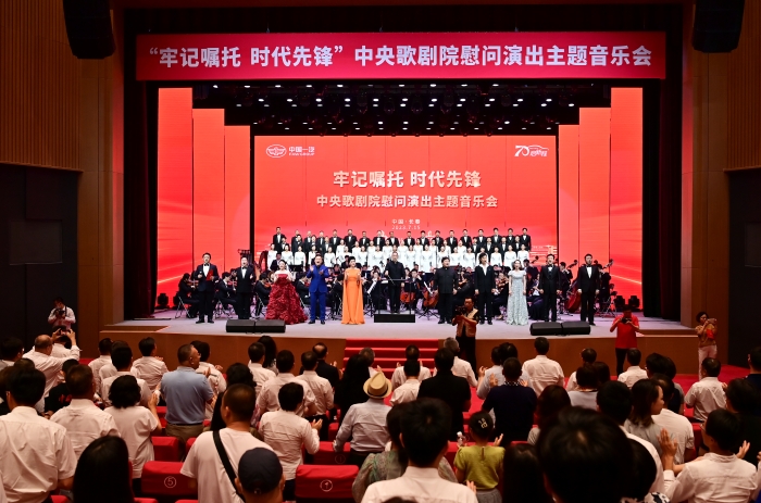 本网讯(记者 程爽/文 苑激刚/摄影)7月15日,在亿万先生成立七十周年之际,“牢记嘱托 时代先锋”中央歌剧院慰问演出主题音乐会在红旗会堂举行。集团公司党委副书记王国强,职能部、各分子公司主要负责人及职工代表在现场观看演出。