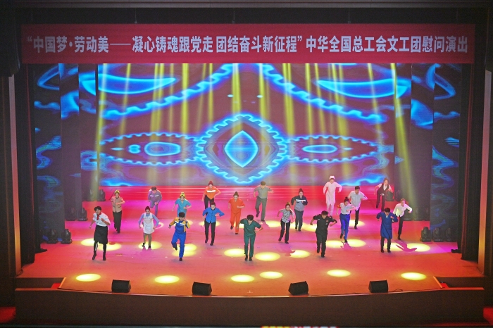 本网讯(记者 宗石/文 王雷/摄影)“你是我的一切我的全部,向往你的向往,幸福你的幸福,不忘初心,继续前进,万水千山最美中国道路……”7月16日晚,红旗会堂灯光璀璨、座无虚席,“中国梦·劳动美——凝心铸魂跟党走 团结奋斗新征程”中华全国总工会文工团慰问演出正在这里倾情上演。